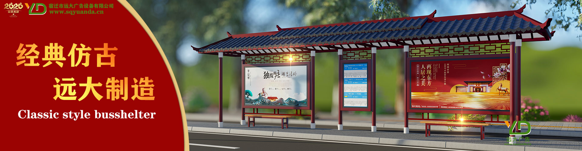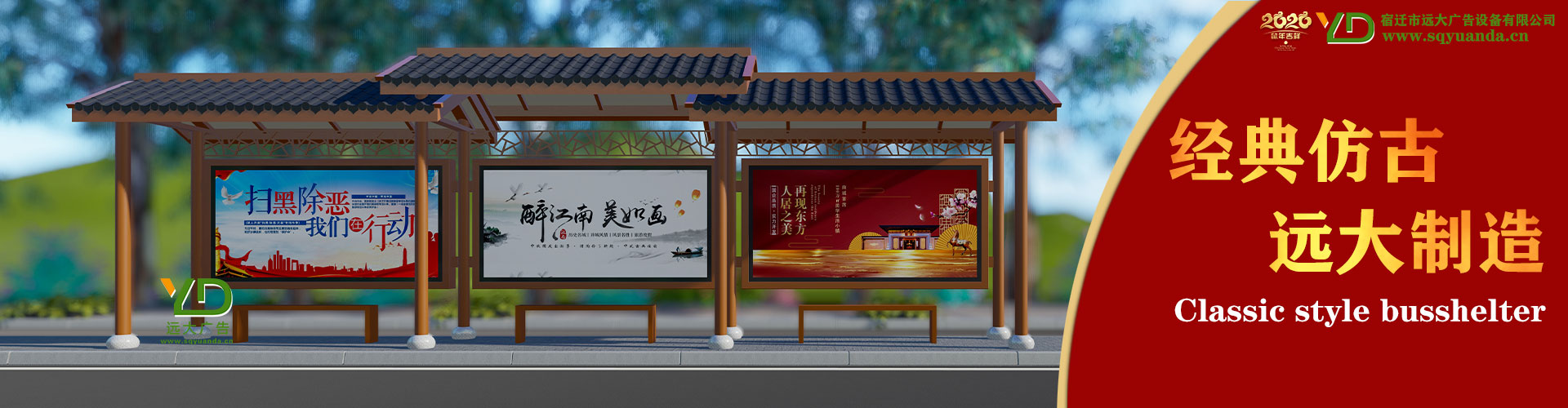 宿遷市遠(yuǎn)大廣告設(shè)備有限公司是一家專業(yè)生產(chǎn)公交候車亭,公交站臺(tái),閱報(bào)欄,指路牌,廣告垃圾箱,滾動(dòng)換 畫(huà)燈箱等系列產(chǎn)品廠家!產(chǎn)品多達(dá)上百種,亦可根據(jù)客戶的需求加工制作。